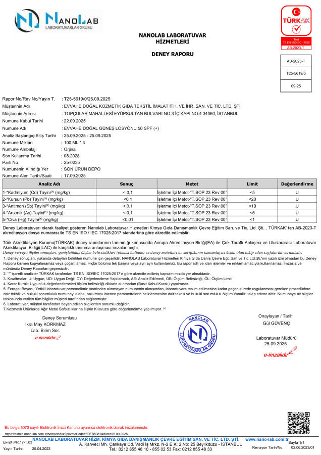 İÇİNDEKİLER: Aqua, Ethylhexyl Methoxycınnamate, Octocrylene, Cetearyl Alcohol, Glyceryl Monostearate, Ceteareth-25, C12-15 Alkyl Benzoate, Caprylıc/Caprıc Trıglycerıde, Glycerıne, Butyl Methoxydıbenzoylmethane, Benzophenone-3, Phenoxyethanol (And) Ethylhexylglycerın, Xanthan Gum, Isopropyl Myrstate, Dımethıcone, Butyrospermum Parkıı (Shea) Butter, Parfum, Aloe Barbadensıs Leaf Extract, Carbomer, Trıethanolamıne, Tetrasodıum Edta.